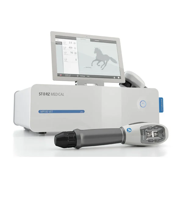 MASTERPULS MP100 VET เป็นเครื่องที่ให้การรักษาด้วยคลื่นกระแทกแบบเรเดียล (Radial Shock Wave) โดยมีแหล่งกำเนิดพลังงานจากแรงดันลมที่ผลักดันกระสุนไปกระทบ transmitter และปล่อยคลื่นไปยังเนื้อเยื่อของร่างกาย MASTERPULS MP100 VET เป็นเครื่อง Radial shock wave ที่ให้จุดเด่นการรักษาอาการปวดเรื้อรังด้วยหลักการไปกระตุ้นให้ร่างกายกำจัดสาร Substance P ออกจากเซลล์ (Substance P washout) โดยมีข้อดีคือสามารถทำให้อาการปวดเรื้อรังดีขึ้นทันทีหลังให้การรักษา อีกทั้งยังมีจุดเด่นด้านการสลายพังผืด หรือ รักษามัดกล้ามเนื้อที่มีพื้นที่บริเวณกว้างโดยมีผลทำให้กล้ามเนื้อเกิดการคลายตัว ด้วยจุดเด่นของตัวเครื่องที่มีโปรแกรมการใช้งานสำหรับสัตว์และเทคโนโลยีของ Storz ที่ทำให้เครื่องมีเสียงการทำงานที่เบา ทำให้ง่ายต่อการใช้งานและลดการตกใจของสัตว์ขณะทำการรักษาได้